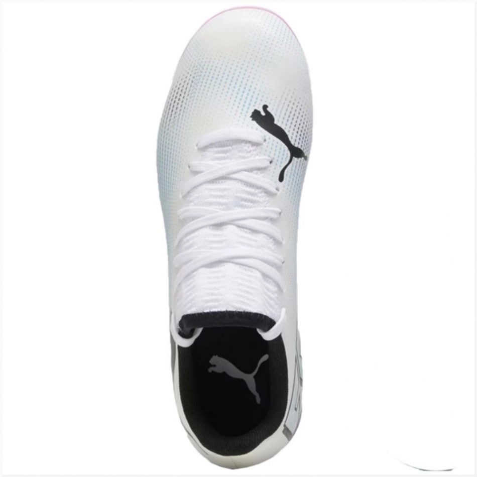 Puma Future 7 Play FG/AG Jr 107734 01 încălțăminte de fotbal albă este alegerea perfectă pentru tinerii pasionați de fotbal care caută nu numai confortul, ci și stilul pe teren.