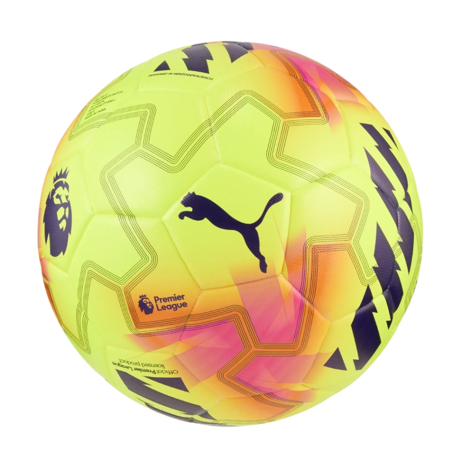 Este o mingă oficial licențiată Premier League pentru sezonul 2025/26, de la PUMA, modelul Orbita Match.