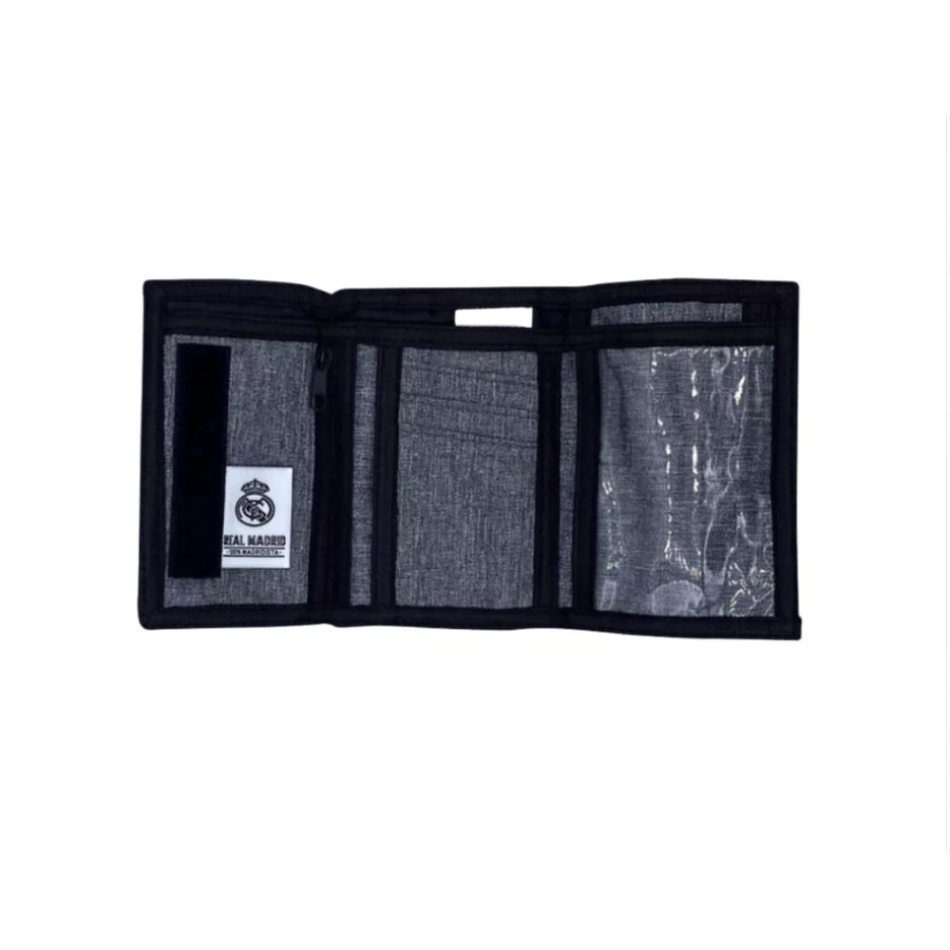 Păstrează-ți banii și cardurile în ordine cu acest portofel Real Madrid gri, stilat.